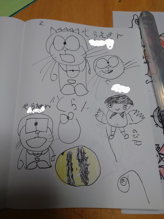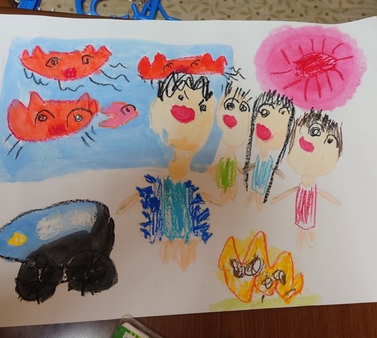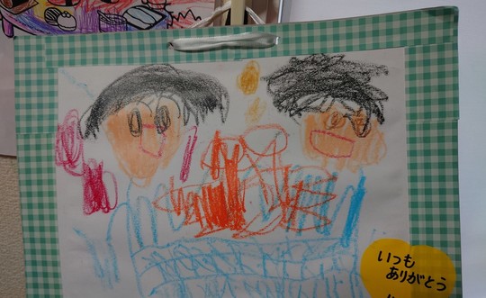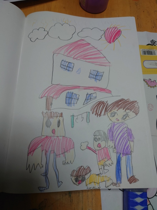 二人とも母を描いてはくれませんでした…(´;ω;`) 娘は、パパとパパの職場のお兄さん!