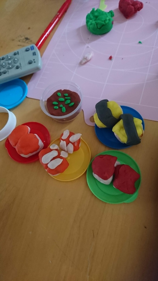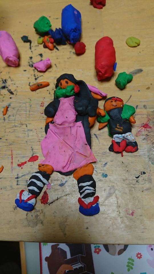 粘土がだめになってしまったのでもう一つ後で買ってあげる約束をしました!
