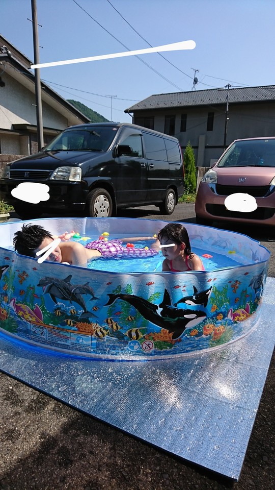 そんな私の傍らで…我が娘、息子は今年初めてのプールに! なんともタイミングよく休みの日にお天気に恵まれ、お庭でプールに入ることができました!!!!