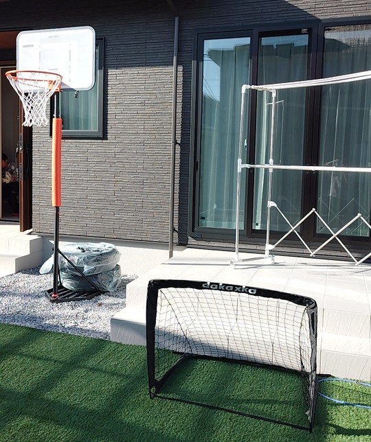 息子はバスケットゴールと小さなサッカーゴールを☆