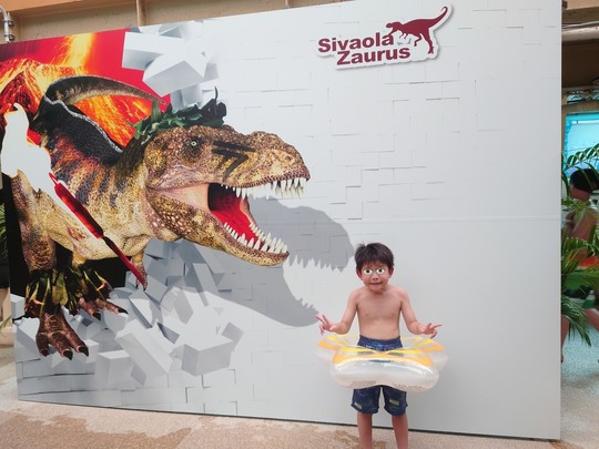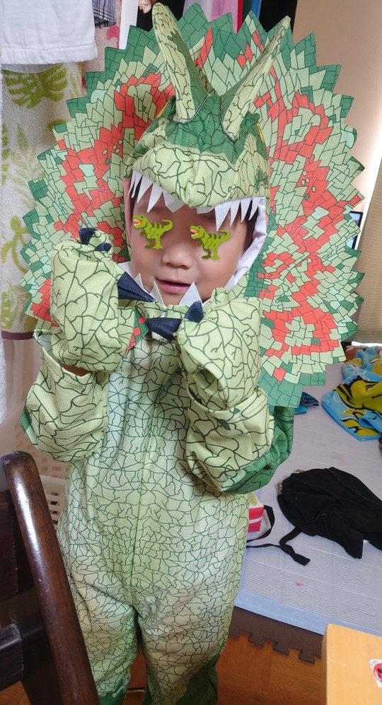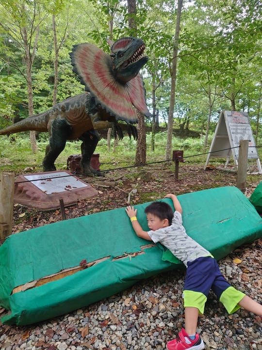 が、真ん中のパキケファロサウルスに目がいったようで笑いはじめ、いつの間にか一緒に遊んでおりました。