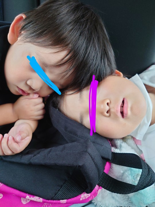 そして、いつも隣で寝るお姉ちゃんを枕にして寝る弟( *´艸`)